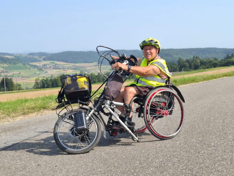 Sportsfreund Willy und ich machten uns an diesem heissen Morgen des 16. August 2025 auf um im Wald oberhalb Eschenmosen mit Bekannten zu grillieren. Kurzfristig verschoben wir die Abfahrt um eine halbe Stunde, so hatte ich genügend Zeit an unserem Treffpunkt in der Landi Hegnau ein Brot zu kaufen und mein Trinkwasser aufzufüllen. Die Route führte uns durch den schattigen Hardwald, über die Panzerpiste am Flughafen und anschliessend bei Winkel hinauf nach Eschenmosen. Früh am Nachmittag machten wir uns wieder auf den Heimweg, dabei posierten wir nahe der Burgstelle Heidegg für ein Foto und sausten unweit dem alten Quarzsand Bergwerk – für die Glashütte in Bülach wurde lange in Embrach gefördert- hinunter nach Lufingen. Das letzte Abenteuer erwartete uns in Nürensdorf, infolge eines Defekts am Bike musste Willy ausharren bis ich ihn mit dem Auto abholen konnte. Das dauerte natürlich seine Zeit. Die Weiterfahrt mit dem Bus klappte nicht, ohne App ist man heute angeschmiert, Bargeld wird nicht angenommen und Ticketautomaten gab es nicht. Der Passagier wird kurzerhand auf der Strasse sich selbst überlassen. Schande an den ÖV! Jedenfalls klappte es dann mit Hilfe von Passanten das Bike und den Rolli zu verstauen und die Autofahrt in den Feierabend konnte beginnen.